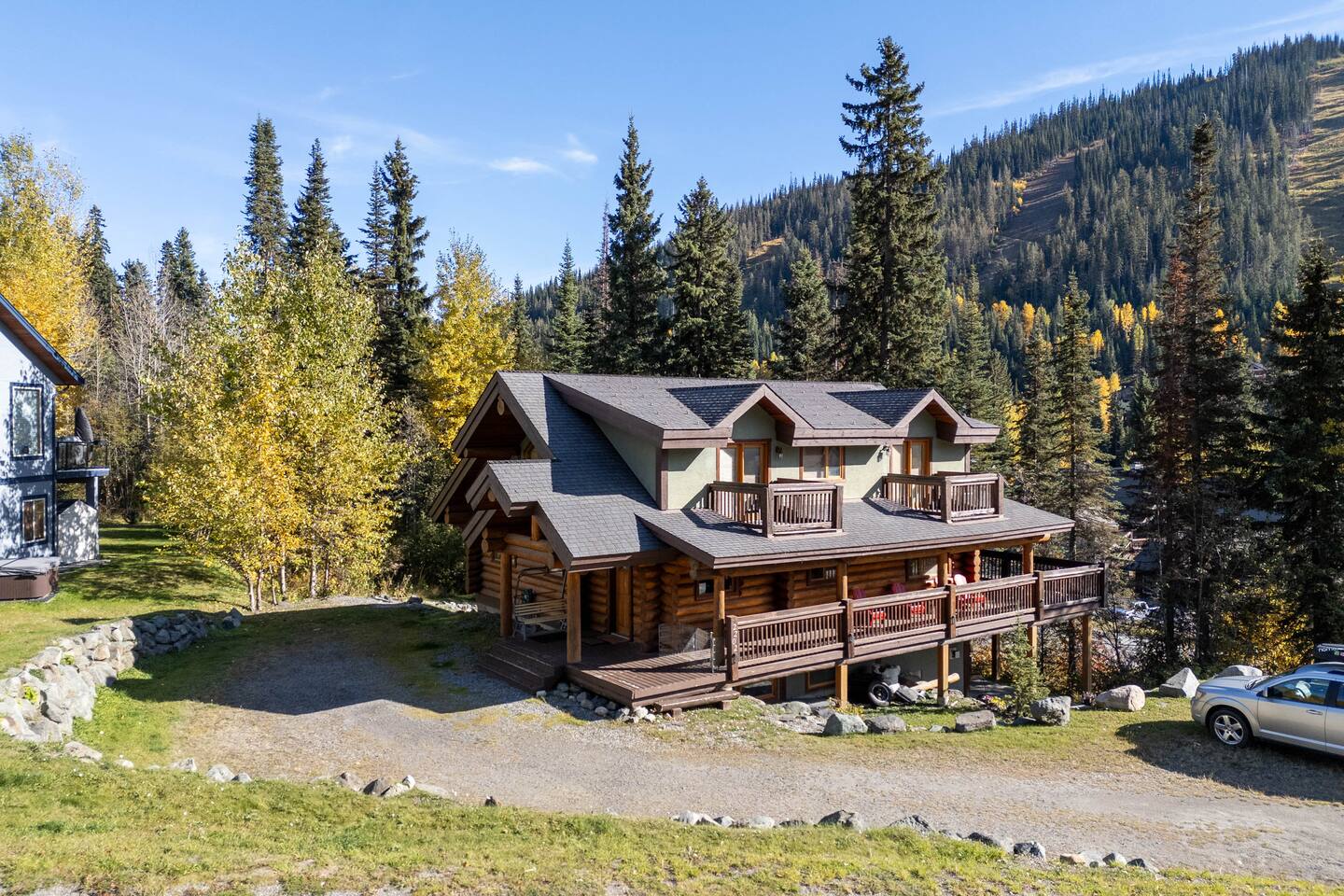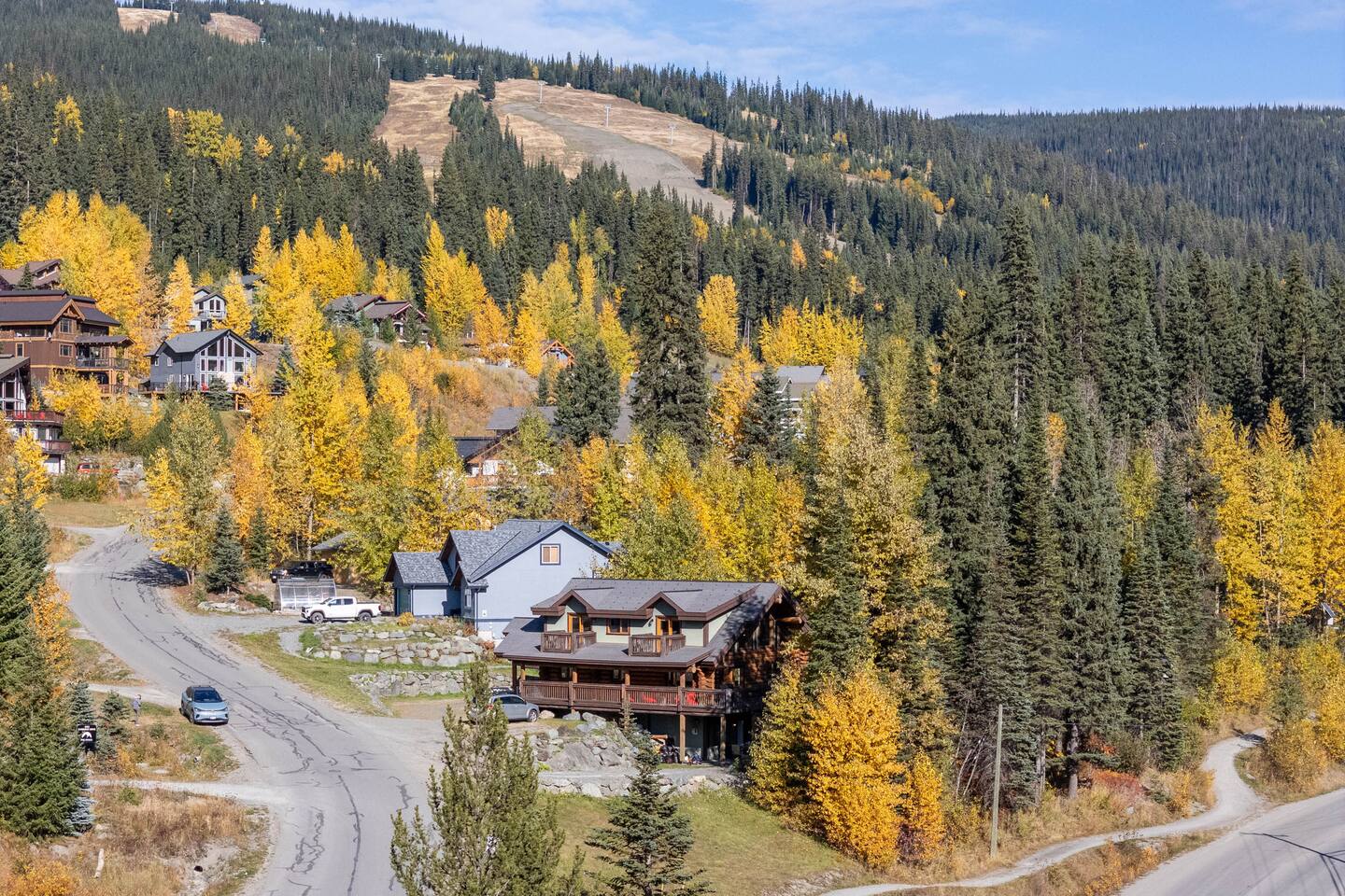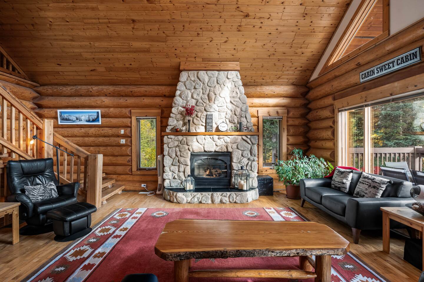 Welcome to Sunburst Chalet! 🏕️🍂 A 4 br with 8 beds log home on Sunburst Drive in Sun Peaks. Perfect for families and groups, this alpine retreat features vaulted ceilings, a stone fireplace, and a cozy loft lounge. Sleep soundly in queen bedrooms, or let the kids enjoy the bunk room. After skiing or biking, unwind in the private hot tub or relax on the wraparound deck with mountain views. Just minutes from the lifts and village, this spacious chalet is your year-round mountain getaway.