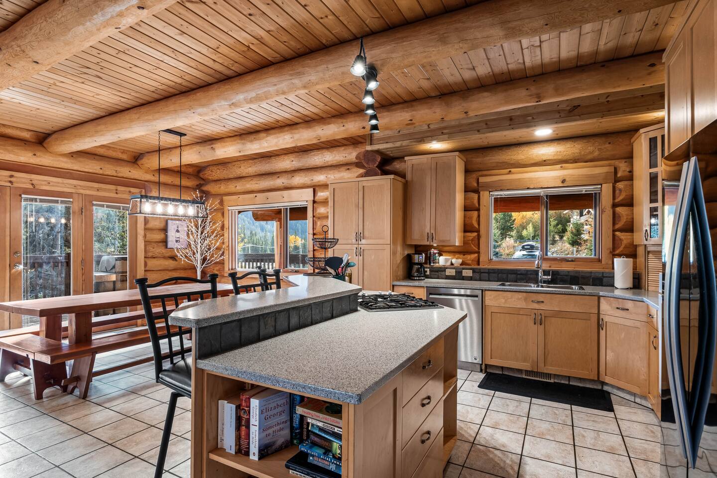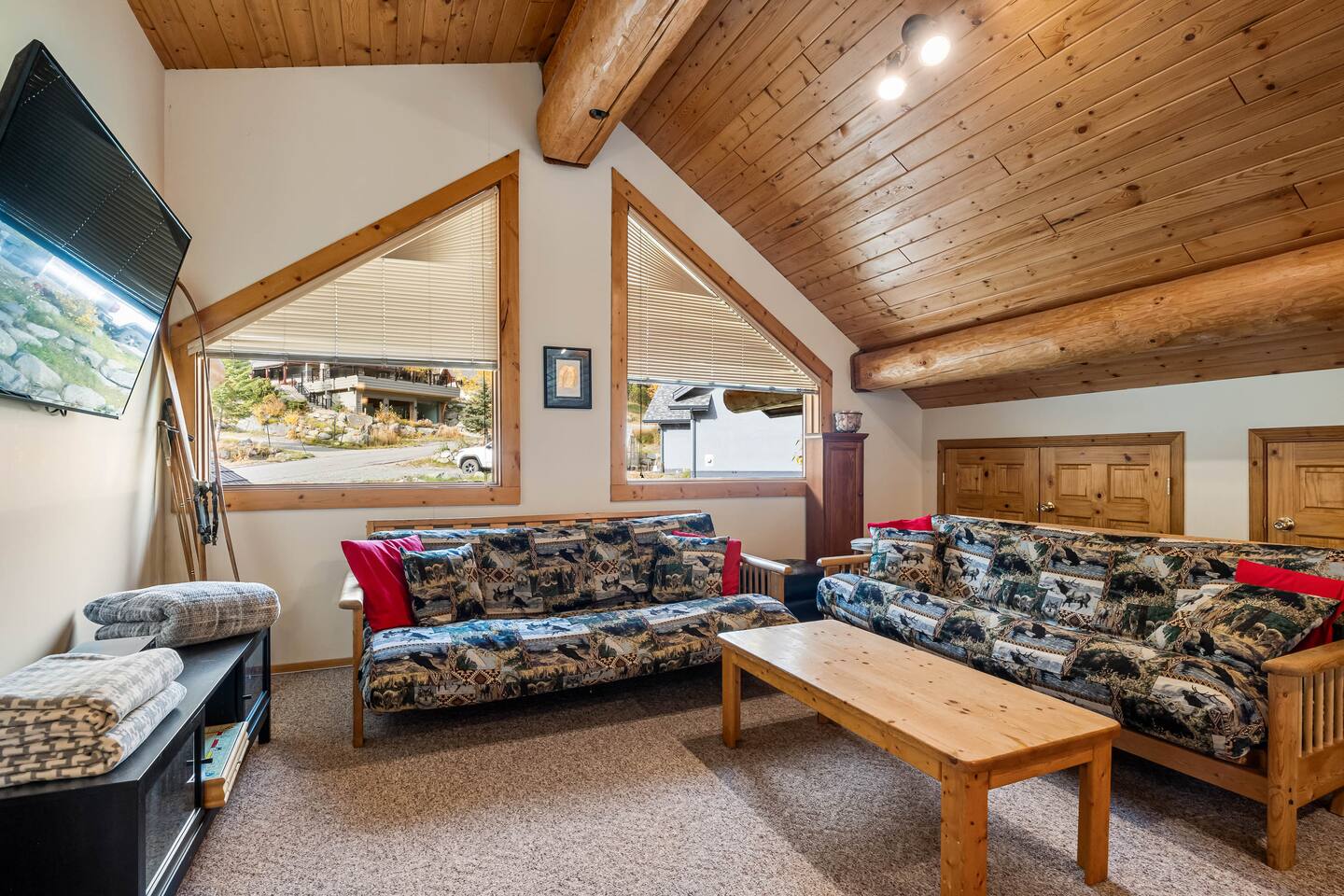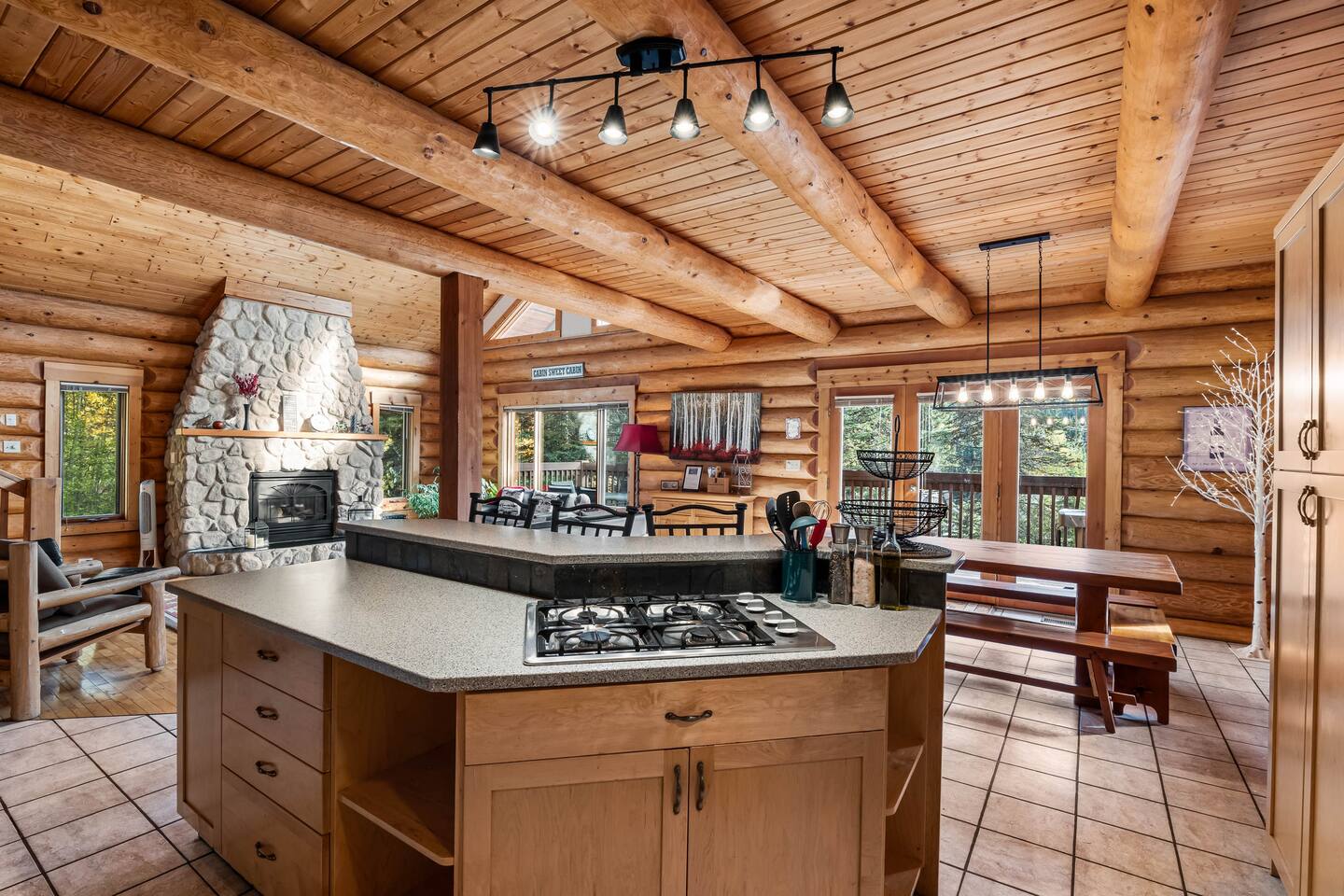 Welcome to Sunburst Chalet! 🏕️🍂 A 4 br with 8 beds log home on Sunburst Drive in Sun Peaks. Perfect for families and groups, this alpine retreat features vaulted ceilings, a stone fireplace, and a cozy loft lounge. Sleep soundly in queen bedrooms, or let the kids enjoy the bunk room. After skiing or biking, unwind in the private hot tub or relax on the wraparound deck with mountain views. Just minutes from the lifts and village, this spacious chalet is your year-round mountain getaway.